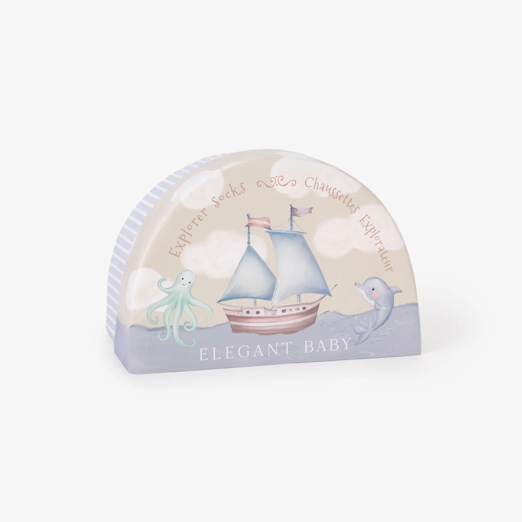 A charming set for little adventurers, this 6-pack of non-slip baby socks features whales, sea creatures, mini cable knits, and nautical stripes. Beautifully packaged in a hand-illustrated gift box, they're a perfect blend of style and function for tiny explorers.