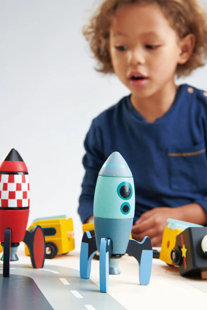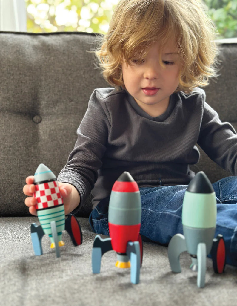 Let your little engineer build their own rocket with our Rocket Construction set! Set includes 21 pieces to build three rockets. Match up the parts and count down to launch!